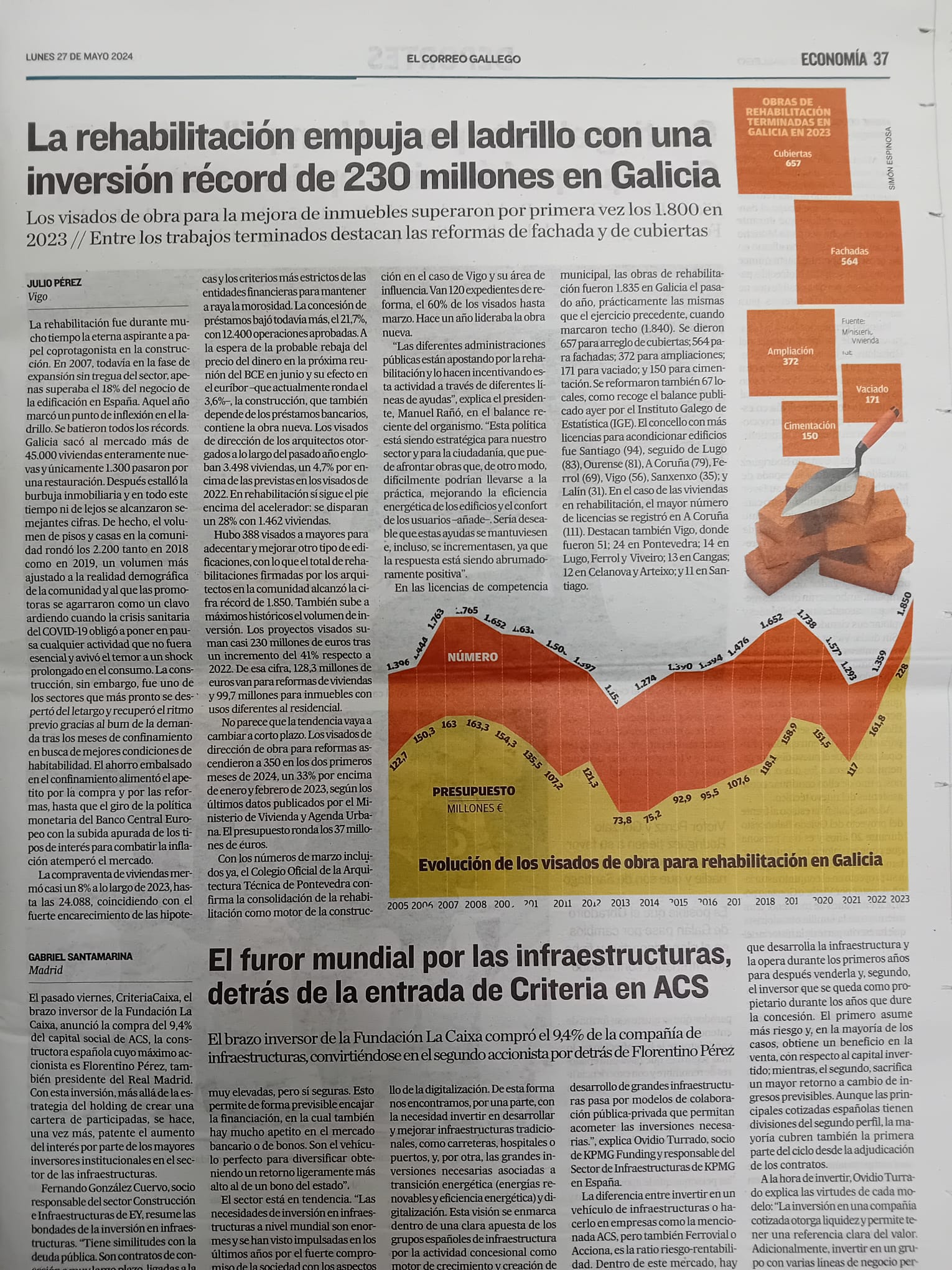 27/05/2025: La Voz de Galicia. Obras por 4.6 millones de euros en el primer trimestre un 60% más